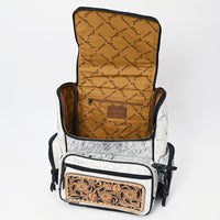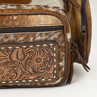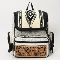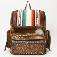 ADBG860 Western Wool & Cowhide Backpack with Tooled Leather Accent Pocket