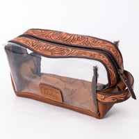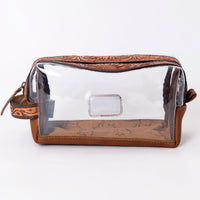 ADBG994 Clear Western Toiletry Bag with Tooled Leather Trim American Darling Travel Pouch
