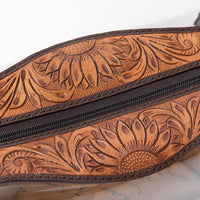 Travel in Western style with this handcrafted Clear Toiletry Bag from American Darling. Designed for both function and fashion, this travel pouch features a transparent, heavy-duty vinyl body trimmed with hand-tooled vegetable-tanned leather adorned with detailed floral sunburst patterns.