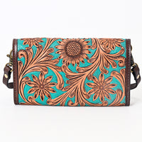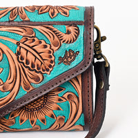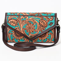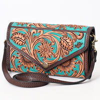 ADBGA378 Turquoise Hand-Tooled Leather Crossbody Wallet Bag Genuine Western Style