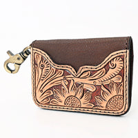 ADBGA407 Tooled Leather Keychain Wallet Western Sunflower Design in Brown