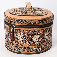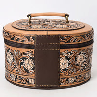 ADBGA412 Western Hand Tooled Leather Jewelry Case Oval Floral Organizer (Tan)