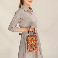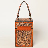 Elevate your storage game with this tall, rectangular case featuring masterfully hand-tooled floral leather. Crafted from genuine full-grain leather, this Western-inspired box includes a sturdy stitched handle, making it perfect for storing jewelry, makeup brushes, grooming tools, or keepsakes.