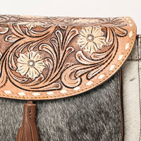 The handpicked cowhide hair-on genuine leather not only adds a soft and tactile element but also serves as an embellishment, enhancing its overall western appearance.