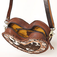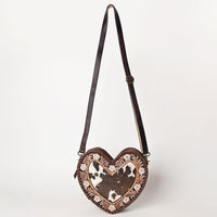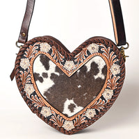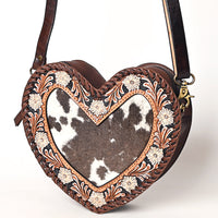 Fall in love with rustic elegance in this heart-shaped crossbody bag from American Darling. Made with genuine cowhide and framed by hand-tooled leather floral accents, this piece blends bold Western style with artisanal charm.