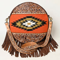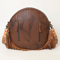 ADBGA486 American Darling Canteen Crossbody Bag Hand-Tooled Leather & Cowhide Western Round Purse