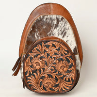 Stand out with this handcrafted Western backpack from American Darling, featuring a stunning combination of natural cowhide and hand-tooled leather. This genuine leather backpack offers durability, style, and practicality, perfect for rodeo days, festivals, school, or travel.