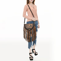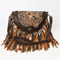 ADBGA540 American Darling Hand Tooled Leather Crossbody Bag with Multi-Tone Fringe & Western Floral Design