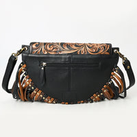 ADBGA540A American Darling Black Leather Tooled Crossbody Bag with Fringe & Concho