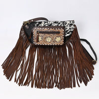ADBGA550 American Darling Western Fanny Pack Cowhide Leather with Hand-Tooled Floral Pocket & Fringe