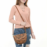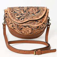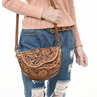 ADBGA561 Hand-Tooled Leather Crossbody Saddle Bag Western Floral Carved Purse