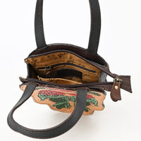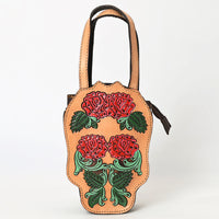 ADBGA570 Hand-Tooled Rose Skull Leather Tote Western Floral Art Bag