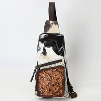 ADBGA579 Hair-On Cowhide Leather Sling Bag with Hand-Tooled Pocket Western Crossbody