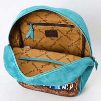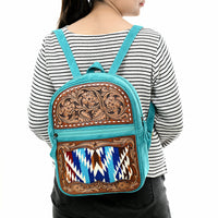 ADBGA581 Hand-Tooled Leather & Wool Backpack Genuine Western Turquoise Bag for Women