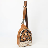 ADBGA612 Tooled Cowhide Leather Sling Bag-Western Floral Mini Crossbody