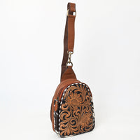 ADBGA613 Tooled Cowhide Leather Sling Bag-Thistle Floral Western Crossbody