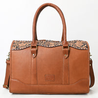 ADBGA625 Cowhide Duffel Satchel with Tooled Leather Floral Yoke & Shoulder Strap