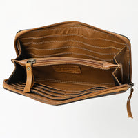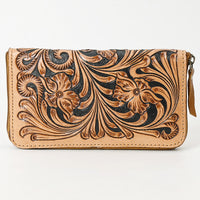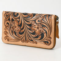 ADBGA629 Hand-Tooled Leather Wallet with Floral Scrollwork & Zip Closure