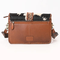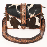 ADBGA635 Hair-On Cowhide Crossbody Bag with Tooled Leather Strap & Trim