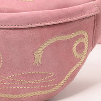 ADBGA668 Western Pink Suede Belt Bag with Rope Embroidery-Rodeo Waist Pack