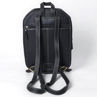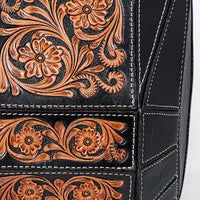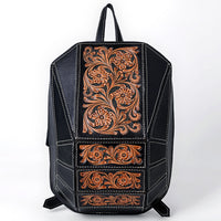 ADBGA680 Hand-Tooled Black Leather Western Backpack with Floral Carving