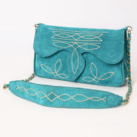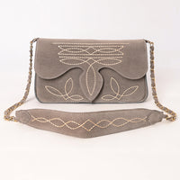 ADBGA692 Western Clutch Crossbody Bag with Cream Embroidery & Chain Strap