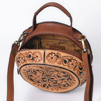 ADBGA705 Round Western Tooled Leather Crossbody Bag - Floral Hand-Carved Design