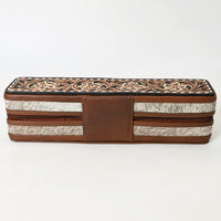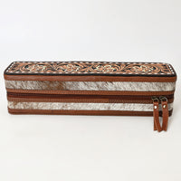 Wrapped with brown-and-white hair-on-hide panels and finished with dual zipper pulls, this long rectangular case is ideal for pens, pencils, makeup brushes, or crafting tools. Rugged, functional, and stylish—perfect for Western lovers and cowgirls who want to organize in style.