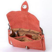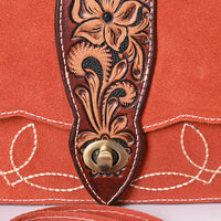 ADBGA712 Western Burnt Orange Genuine suede Shoulder Bag - Tooled Leather Floral Flap with Turn Lock