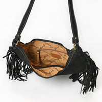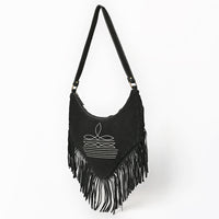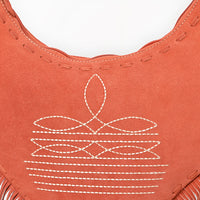 ADBGA733 V-Cut Genuine suede Fringe Crossbody Bag - Western Embroidered Hobo Purse