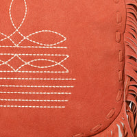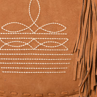 Add Western flair to your outfit with this stunning Genuine suede Crossbody bag, designed with long flowing fringe and detailed white embroidery. The wide soft strap features matching stitched accents and lays comfortably over the shoulder, making it ideal for everyday wear or festival outings.