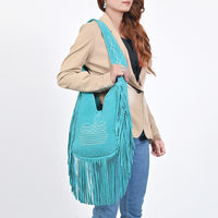 ADBGA734 Genuine suede Fringe Large Crossbody Bag - Western Embroidered Boho Hobo Purse