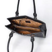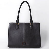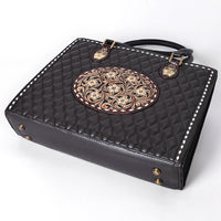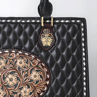ADBGA735 Black Quilted Western Leather Tote Bag - Tooled Floral Medallion & Double Handles
