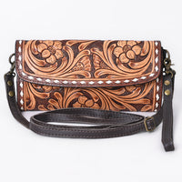ADBGA808 Tooled Leather Floral Clutch Crossbody - Western Hand-Carved Convertible Purse