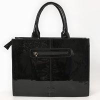 ADBGA842 Black Patent Western Tote Bag - Rodeo Cowboy & Horseshoe Embroidered Design