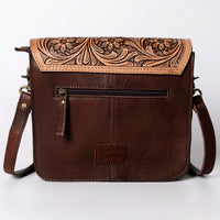 ADBGD123 Tooled Leather & Hair-On Hide Western Crossbody - Floral Design with Turquoise Accent