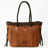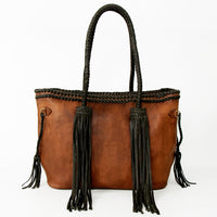 ADBGD132A Brown Leather Western Tote Bag with Braided Fringe & Handles - Handmade Boho Style
