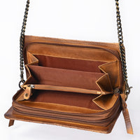 ADBGM169AL Quilted Leather Crossbody Purse - Distressed Tan with Chain Strap