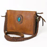 ADBGM335 Leather Crossbody Bag with Turquoise Concho & Braided Strap - Handmade Western Purse