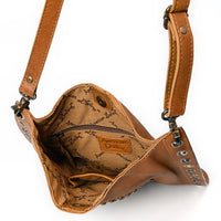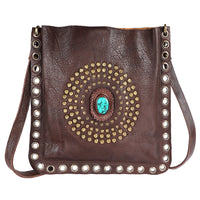 ADBGM353 Leather Crossbody Bag with Studded Circle & Turquoise Concho - Western Grommet Shoulder Purse