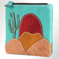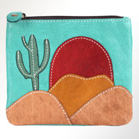 ADBGM359 Hair-On Cowhide Coin Purse with Desert Scene Applique - Handmade Western Cactus Zip Pouch