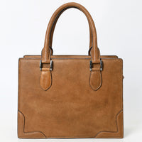 ADBGM371 Tan Structured Leather Tote Bag - Western Minimalist Handbag with Stitched Corner Accents