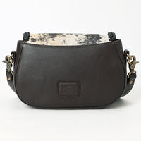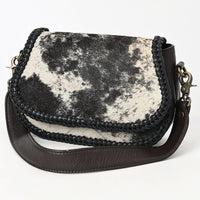 ADBGM464 Hair-On Cowhide Crossbody Bag - Black & White Western Saddle Style with Braided Trim