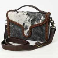 ADBGM465 Hair-On Cowhide Leather Crossbody - Western V-Flap Bag with Braided Trim & Handle