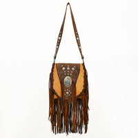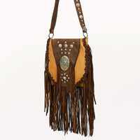 ADBGM468 Western Leather Fringe Messenger Bag - Concho & Turquoise Medallion Design