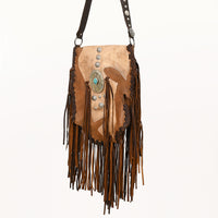ADBGM471 Western Fringe Leather Messenger - Sculpted Flap with Turquoise Medallion & Concho Accents