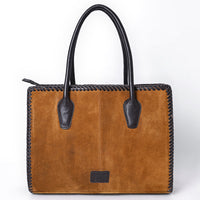 ADBGM484 Genuine suede Western Tote - White Stitch Detail with Braided Trim & Black Leather Handles