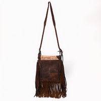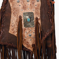 ADBGM487 Two-Tone Leather Fringe Messenger - Western Turquoise Concho & Braided Strap