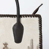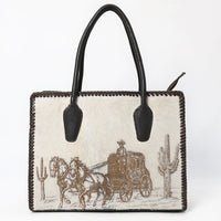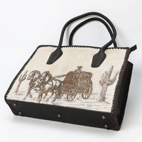 ADBGM512 Western Cowhide Leather Tote with Stagecoach Design -Handcrafted Rodeo Purse