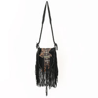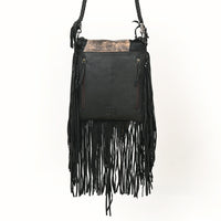 ADBGM549 Black Leather Fringe Crossbody Bag - Western Braided Purse with Conchos & Distressed Flap
